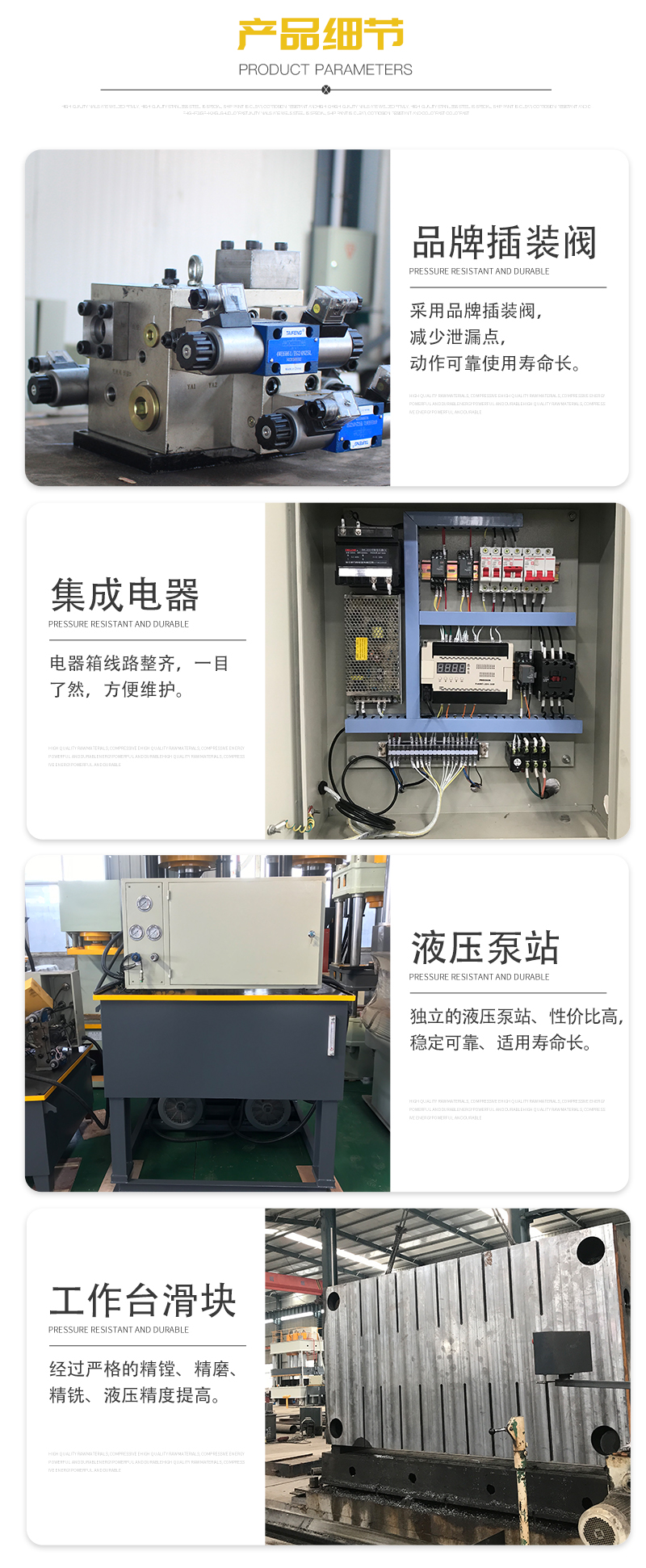 1、機身為四柱式結構,受力件經優化設計,外形美觀,經濟適用