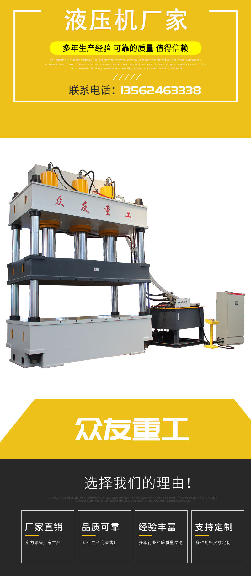 眾友重工油壓機,72小時內免費提供設計方案。