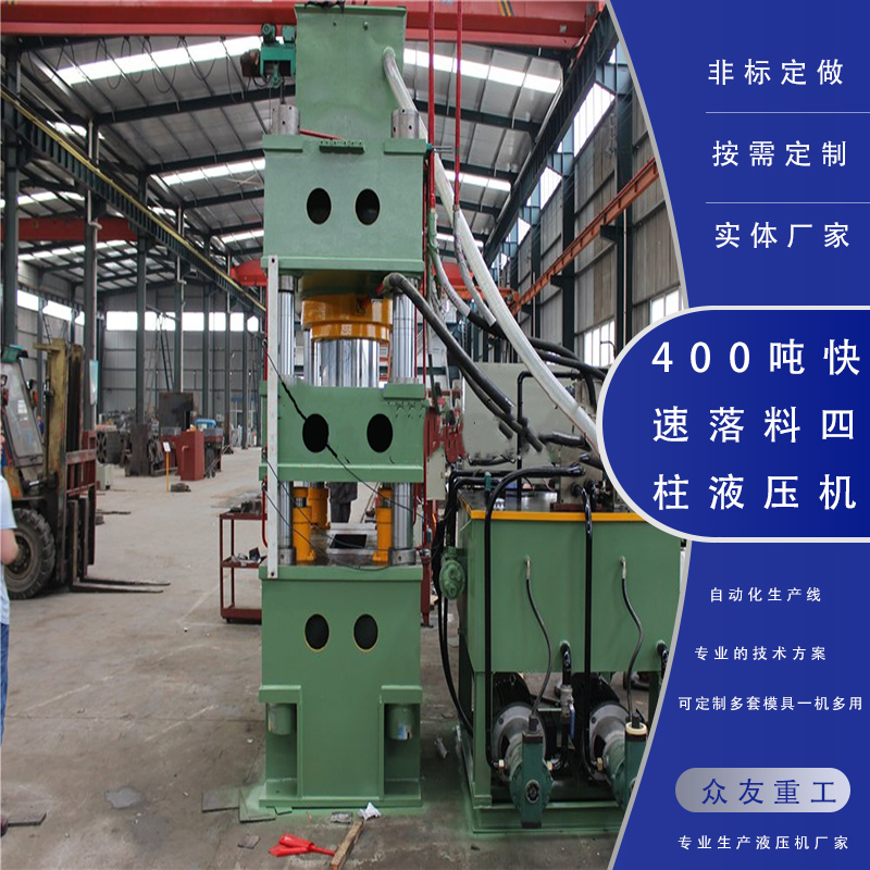 400噸快速落料四柱油壓機以鍍鋅板為基板,工作臺、滑塊為整體45#鑄鋼,鍍鋅板為基板,采用優質環保聚酯烤漆為面漆。 油壓機主缸 機器的油缸為45#鋼,采用鍛造經處理后加工,延長機