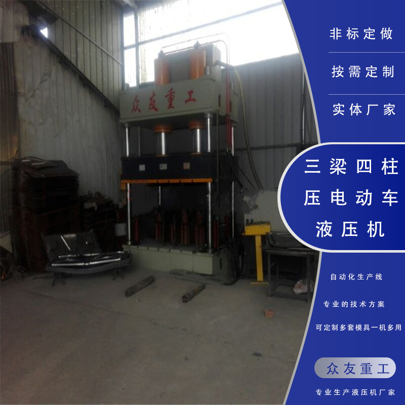 三梁四柱油壓機壓電動車油壓機油壓機機身采用三梁四柱式結構,上梁、中間滑梁、工作臺通過立柱和緊固螺母、調整螺母結合成一個固定機架,機架精度靠調節螺母調整,具有良好的