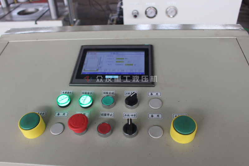 1、100噸四柱伺服油壓機采用先進PLC液壓傳動技術,科技含量高,故障率低,自動化程度高,工作效率高。
