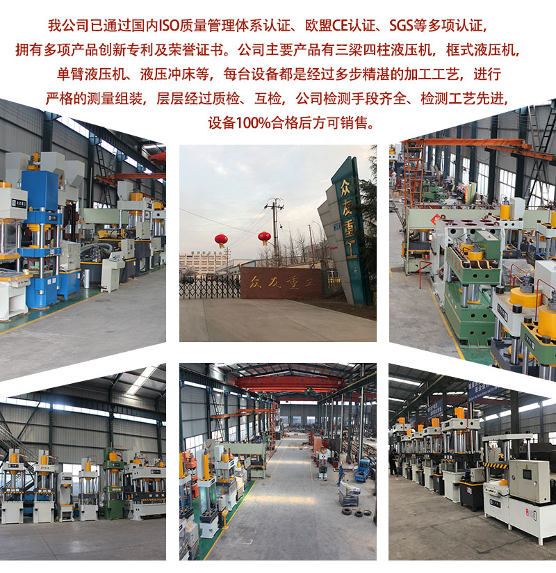 滕州眾友重工機械設備有限公司有16年的油壓機生產(chǎn)經(jīng)驗。整機檢測100%合格后準予出廠。