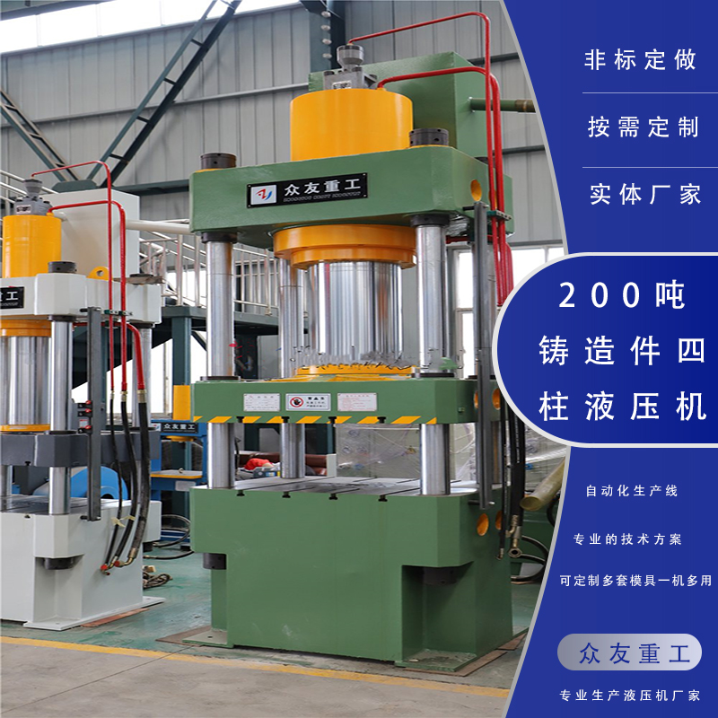 200噸鑄造件四柱油壓機產(chǎn)品特點:三梁四柱結(jié)構(gòu),經(jīng)濟實用,液壓控制采用插裝閥集成系統(tǒng),減少泄露點,動作可靠,使用壽命長,可實現(xiàn)定壓和定程兩種成形工藝,具備保壓延時功能
