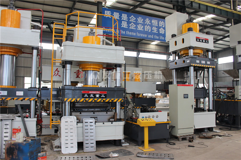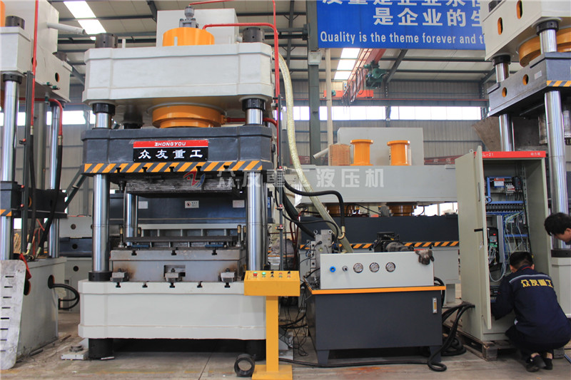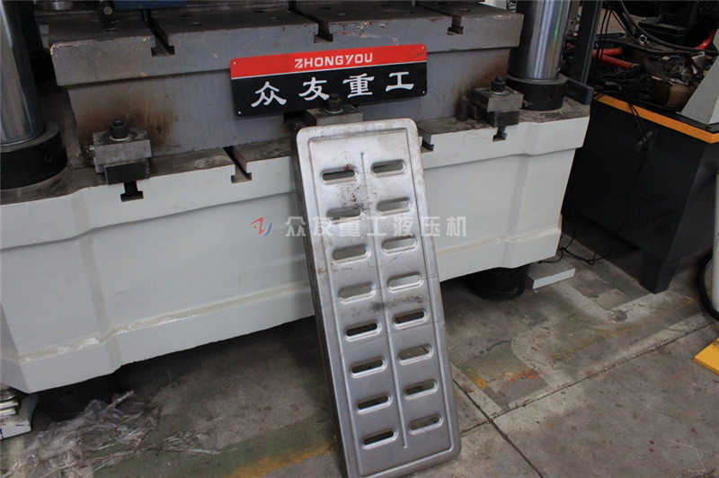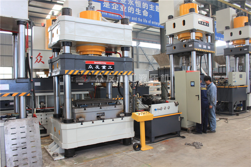 400噸壓地漏蓋板四柱油壓機_400T金屬成型油壓機是金屬拉伸成型常用的設備之一,是專為鋁、銅制品和不銹鋼、薄鐵制品行業設計制造的油壓機,特別適用于薄板拉深和不銹鋼、薄板壓制成形,機身剛性好,滑塊速度快,沖擊成形好等特點。設備鍛件精度高,能較好的控制高度公差,材料利用率及生產效率高,易于實現在自動化,對工人操作水平要求低,噪聲和振動小等優點;滕州眾友重工設計生產三梁四柱油壓機經驗豐富,比如牛羊舔鹽舔磚壓塊機、耐火磚成型油壓機、耐火材料成型壓力機、鎂碳磚成型油壓機、金屬粉末成型油壓機、鐵粉漁網墜成型油壓機等等,同時可以按照客戶的需求進行設計