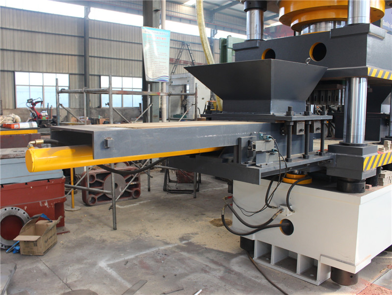 雙色魚餌壓塊630噸油壓機由主機、液壓泵站和電腦控制柜組成,與其他設備相比,不同點在于:它有兩個布料系統,每個布料箱內都放置不同的魚餌料。模框左面是一個布料箱,右面是另外一個布料箱,后面是推塊系統,前面用于放置推出的魚餌塊,在模具體下部有兩個油缸,用于控制模具體的上下移動。其具體工作過程為:模具體下部油缸向上移動,移動距離需要根據原材料的壓縮比計算,一個布料箱開始工作,將物料布滿模具框內,然后后退,主油缸下行輕微壓制下與餌料,然后上行,第二個布料箱開始工作,將另外一種料布滿在料箱內,然后后退,主油缸快速下行加壓成型,保壓幾秒鐘,模具體下部油缸下行,從而實現魚餌塊脫模,推塊系統工作,將魚餌塊推出,這樣一個過程就完成了,依次循環,實現連續生產