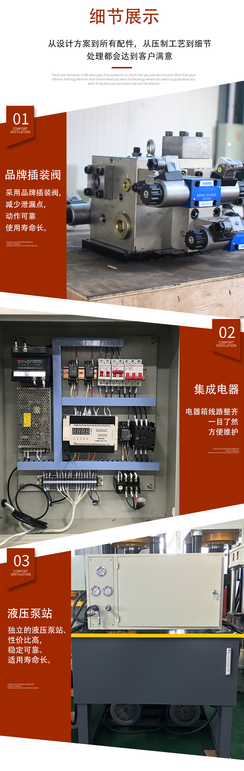6、油壓機具有快速工進,慢速靠模功能,提高生產效率與模具使用壽命