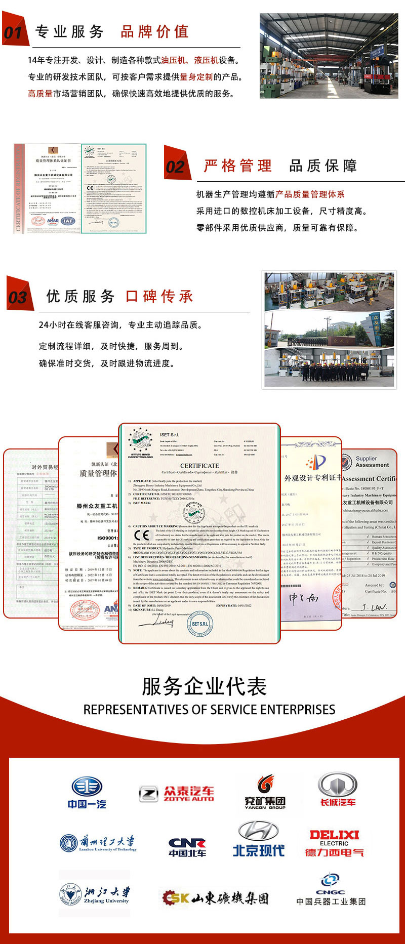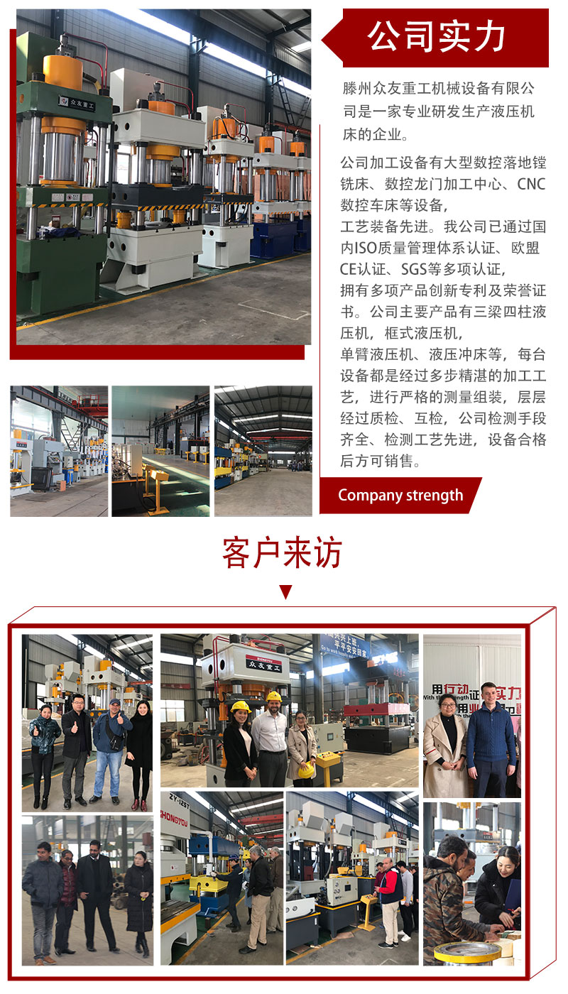 2、采用四柱導向結構,導向精度高,抗側向力強,適用于壓制精度要求高、不對稱產品