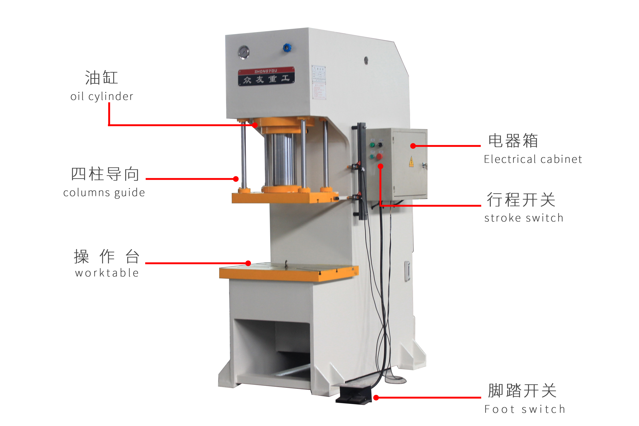 9.單臂油壓機采用錘帶式電機,能耗小,噪聲低