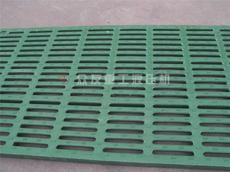 漏糞板采用BMC復合材料,高壓壓制成型,內部添加雙層加粗鍘筋網,承重能力強。新型復合漏糞板采用原生料制作,原材料有:環(huán)保型樹脂,碳酸鈣粉,苯乙烯,玻璃纖維攪拌均勻后,使用大臺面315噸漏糞板成型油壓機經145度高溫模壓一次成型,復合漏糞板采用背面雙承重結構,加的有雙層鋼筋,抗摔耐用。承重力度高,加重不加價