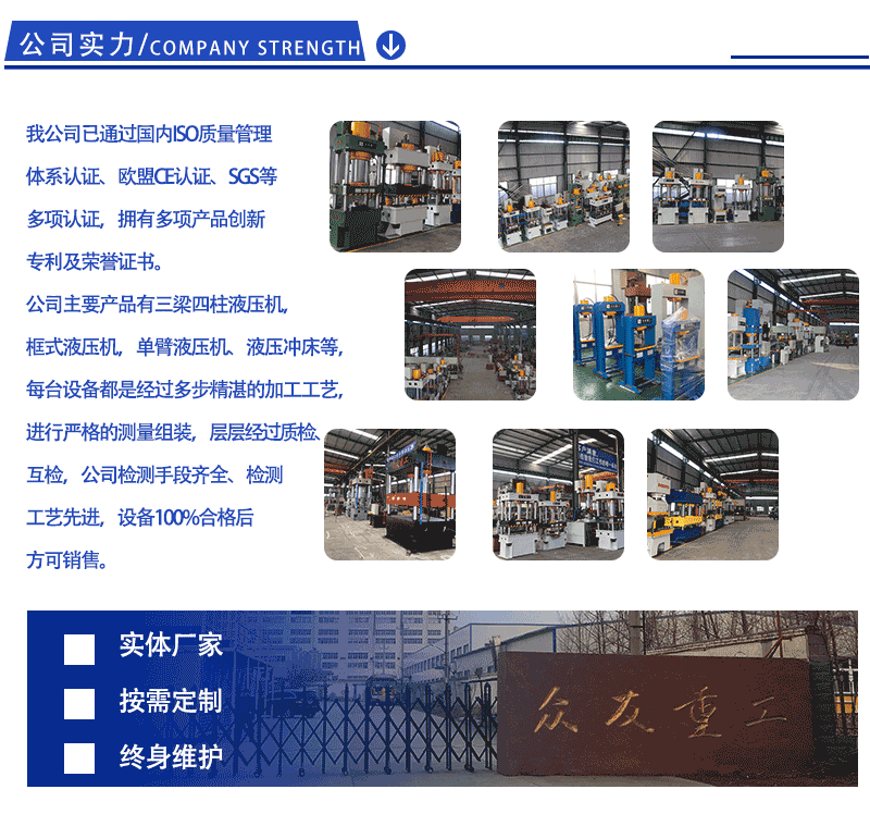 滕州眾友重工機械設備有限公司有16年的油壓機生產經驗。整機檢測合格后準予出廠。
