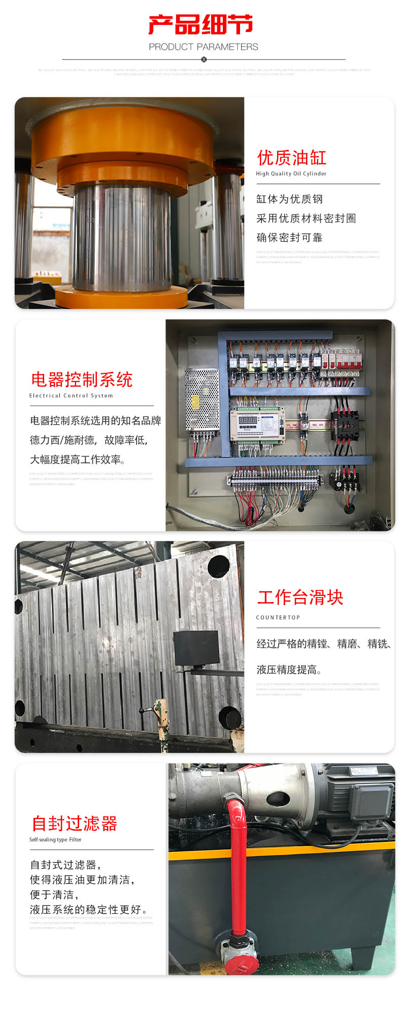 5、500噸脲醛樹脂馬桶蓋一次成型四柱油壓機采用先進的插裝閥,結構緊湊,減少了管路連接,提高了系統的密封性,減少滲漏。