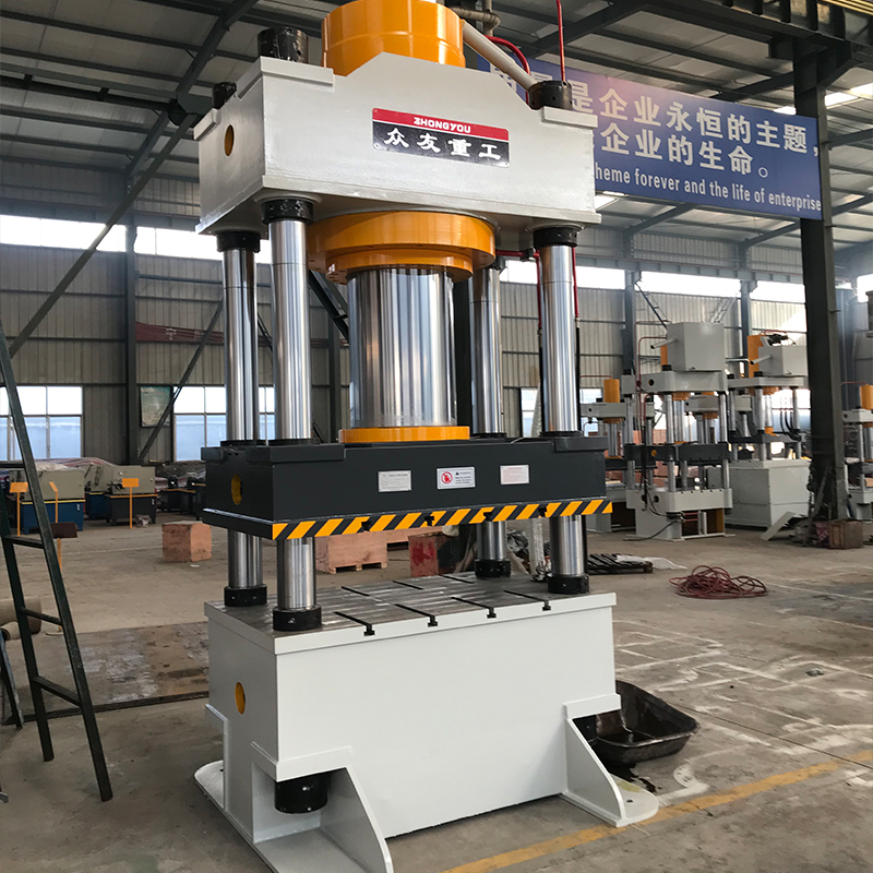 2、拉伸油壓機-帶液壓墊拉伸機。多點拉伸墊技術的核心在于布置在壓力箱之下的幾根油缸,油缸可以編程獲得不同的壓邊力。不同的壓邊力意味著,壓力箱和拉伸墊壓邊圈改變其平行位置,從而改變上模和壓邊圈之間的板料夾持力。如果一根壓邊油缸的壓力增加,板料夾持力增加,流入模具的材料減少。反之,如果壓力降低,流入模具的材料增加。采用四點拉伸墊時,系統影響角點。而采用六點和八點拉伸墊時,還能附加影響拉伸零件的輪廓。
